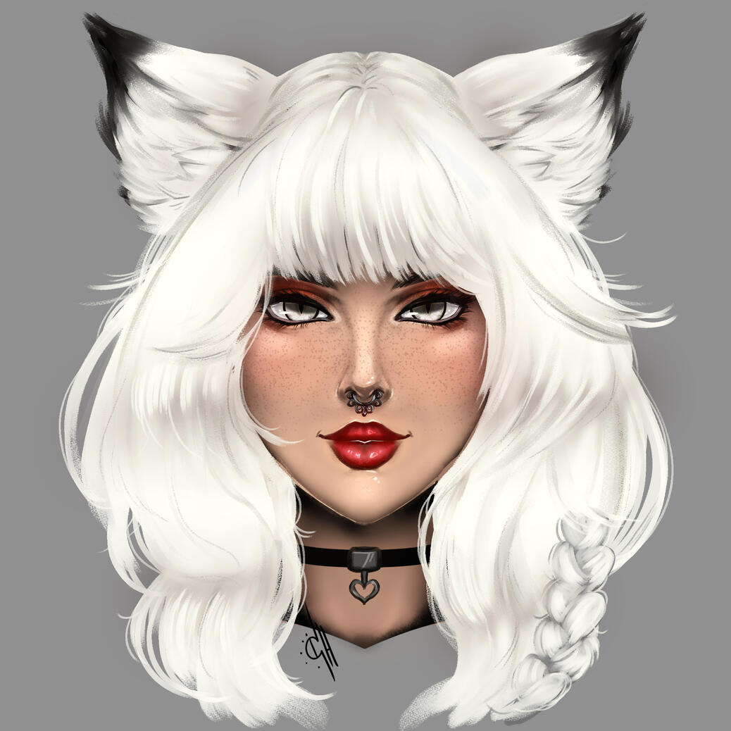 | hair | luxurious, short to mid-length, silver-tinted ivory |